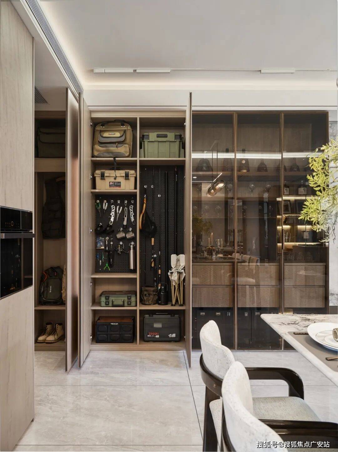 全面的收纳与精工细节:该户型同样注重收纳,配备超体量玄关柜,并对岛台、卫生间镜柜、主卧衣帽间等空间进行了系统化收纳设计。